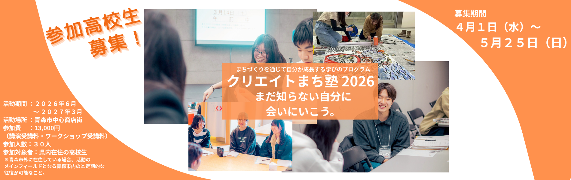 - クリエイトまち塾2025成果発表会を開催します!(3月14日(土))特定非営利活動法人あおもり若者プロジェクト クリエイトは、来る3月14日(土)にねぶたの家ワ・ラッセにて、2025年度の成果発表会を開催します。 若者が主体となったまちづくりを実践するクリエイトで… 続きを読む: クリエイトまち塾2025成果発表会を開催します!(3月14日(土))